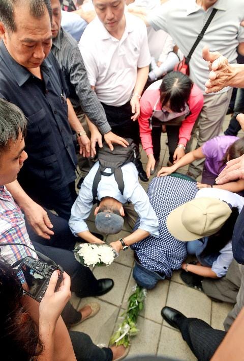 The gesture has become a grim tradition since 2014, when a 21-year-old young man stabbed passengers on a Taipei Metro train, killing four. Six days later, the man’s parents publicly apologized at Jiangzicui Station—the very station where their son had been arrested—kneeling and weeping before reporters. His father called for a swift death sentence, saying the crime was “unforgivable.” (His son was convicted and executed in 2016.) The families of the 2014 victims refused to accept the apology. Several victims’ family members heaped further scorn on the parents, saying that the parents “did not teach him well and he eventually became society’s problem. Society has paid a great price for his deed.”